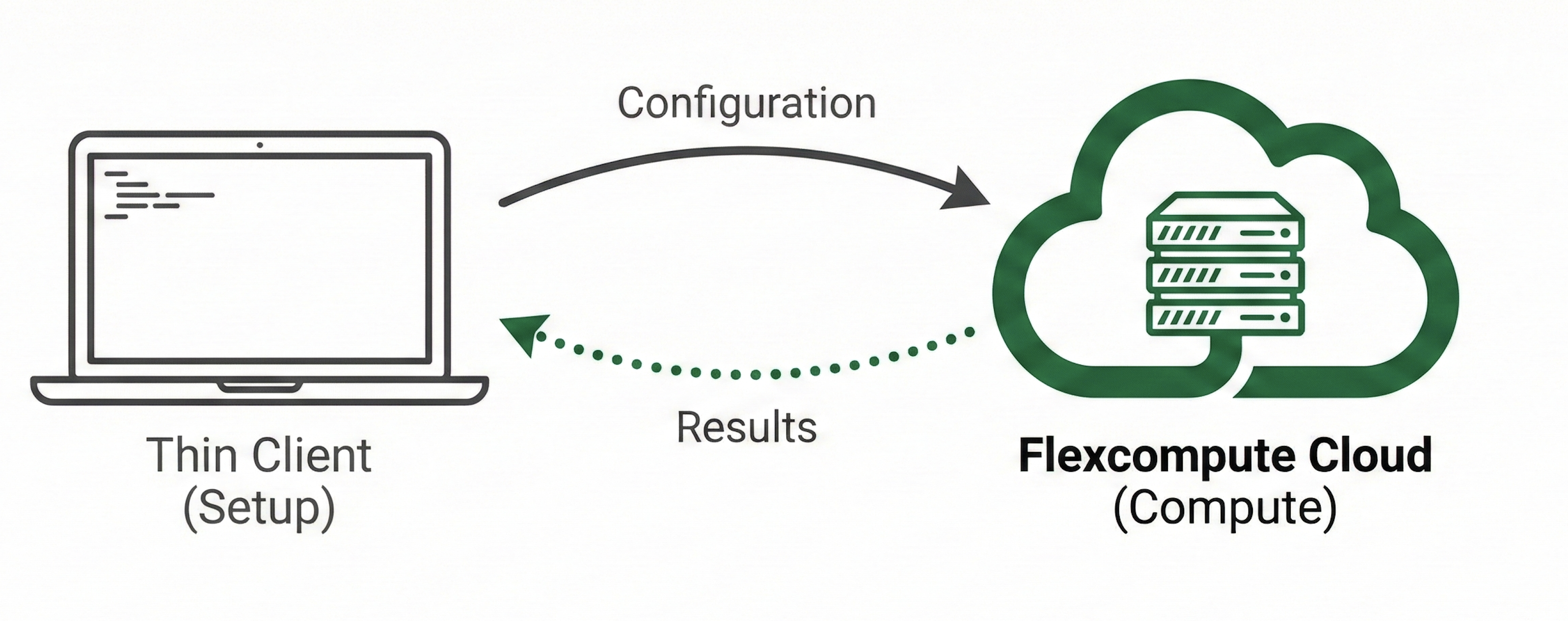 The Cloud (Us): When you submit a case, your configuration is sent to the Flexcompute cloud. Our system provisions the necessary high-performance hardware (GPUs) to mesh, solve, and post-process your case.