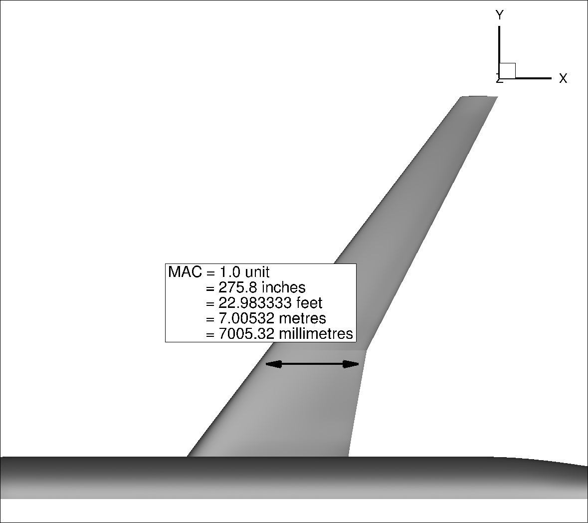 Fig. 7.2.1 CRM geometry scaled to different geometry and mesh units#