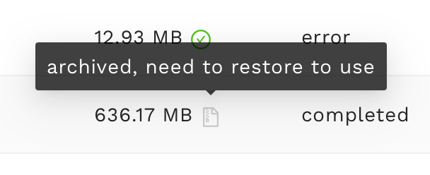 Archiving usually takes up to few minutes. When done, the storage type becomes archived.