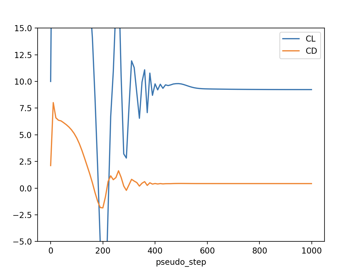 The script will wait for simulation to complete. After completition, it will plot CL and CD convergence plot: