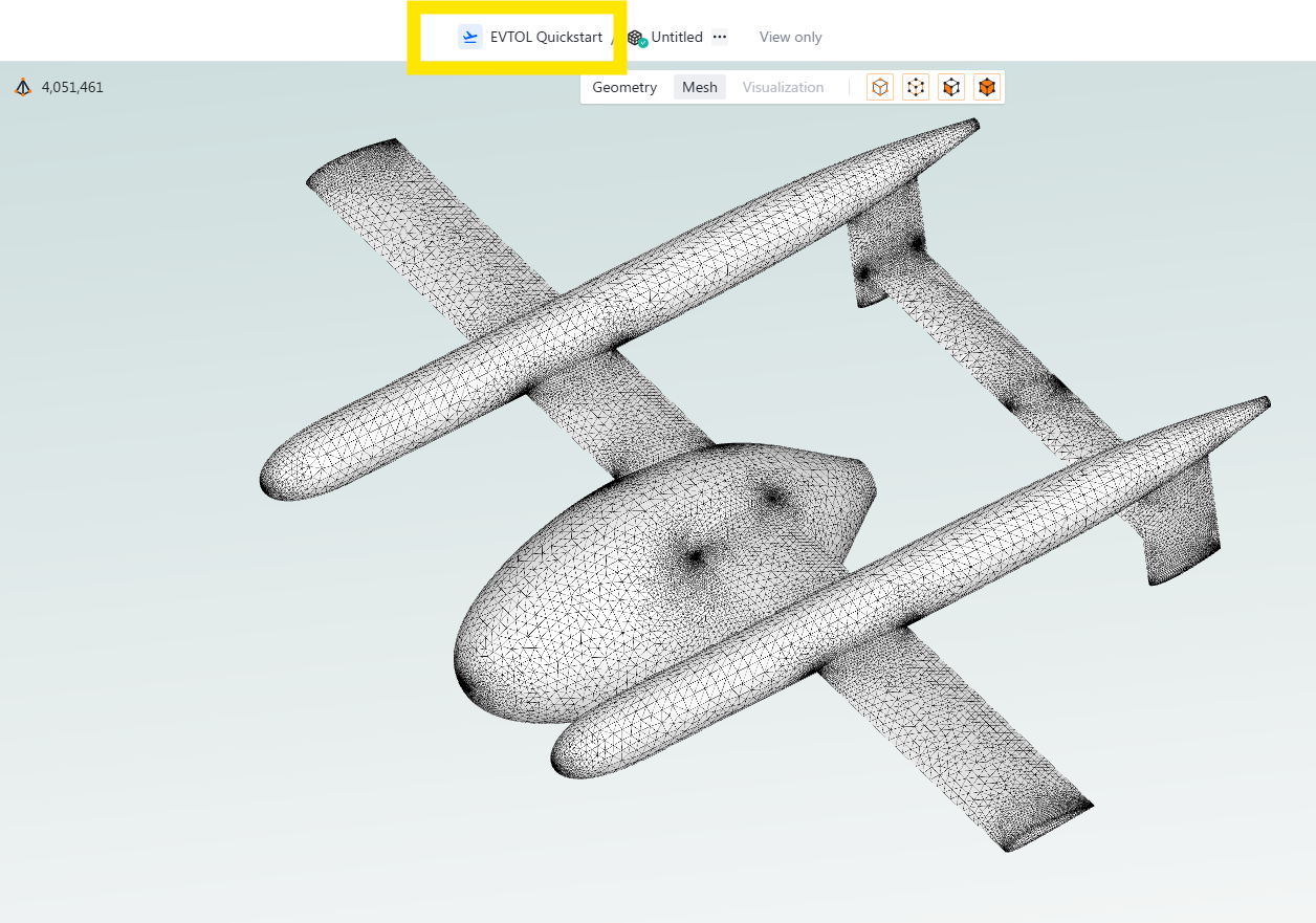 A very useful feature for working within a project is the project tree that gives you quick access to all the entities in your project. The root is either the CAD geometry or volume mesh you uploaded. All the entities that have been generated off of that root are then displayed with their relative relationship clearly displayed. You can access the project tree by clicking on the project name in the top middle of the view.