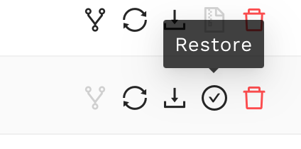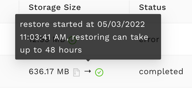 Select “Restore”. The icon next to storage size will change: