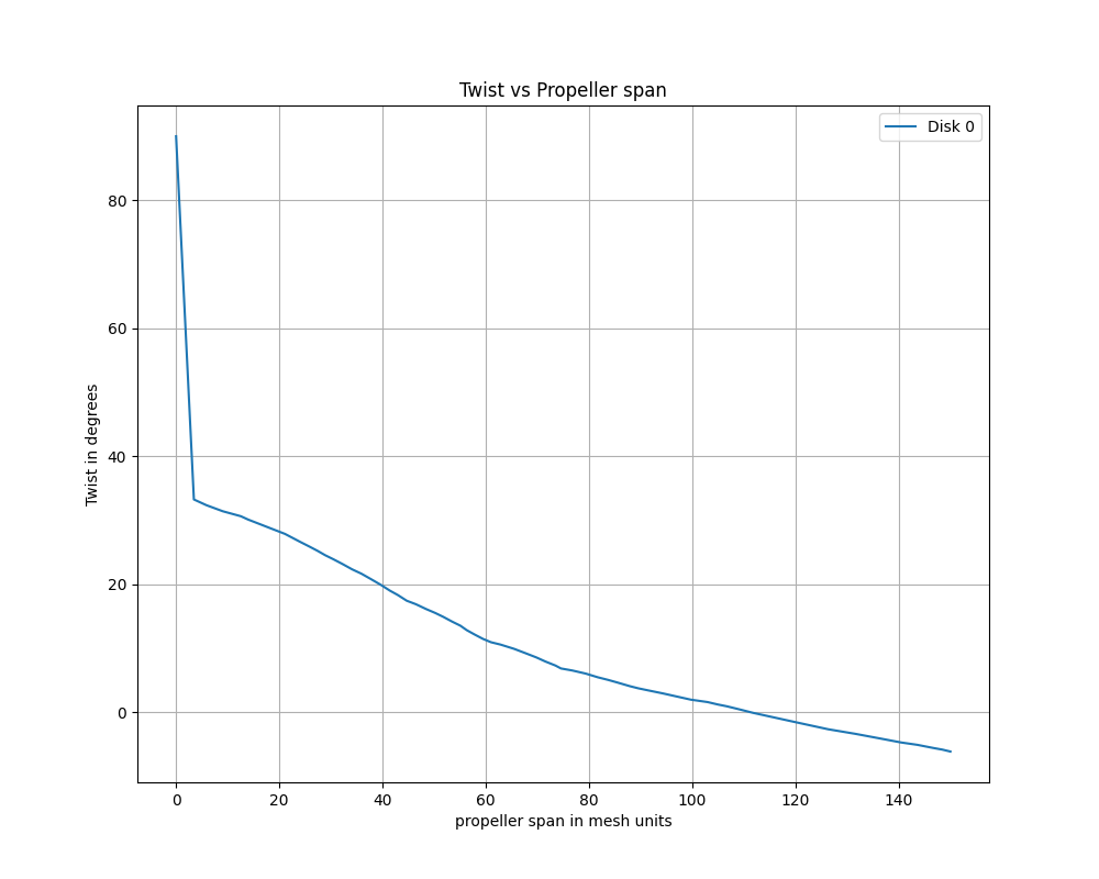 Sample twist vs propeller span in mesh units#
