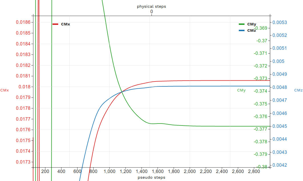 For example, for the 2D CRM multi-element configuration, the convergence histories of forces are: