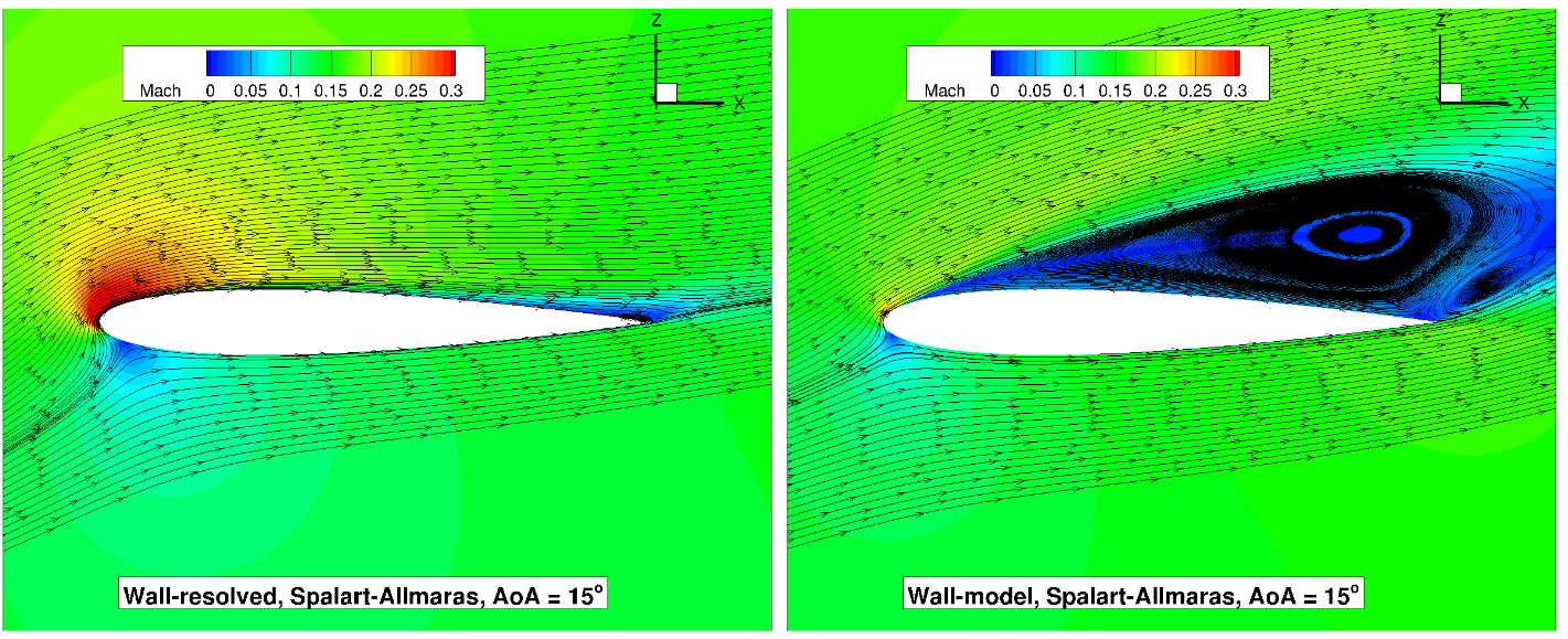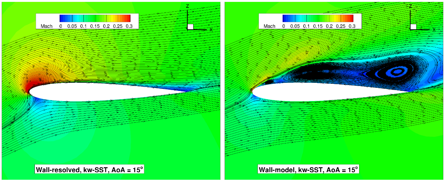 The wall model does not perform well under the presence of strong pressure gradients, which is the case in aerospace applications near stall. The current wall model formulation does not account for pressure gradient effects. Therefore, for such flows, wall-resolved simulations are recommended.