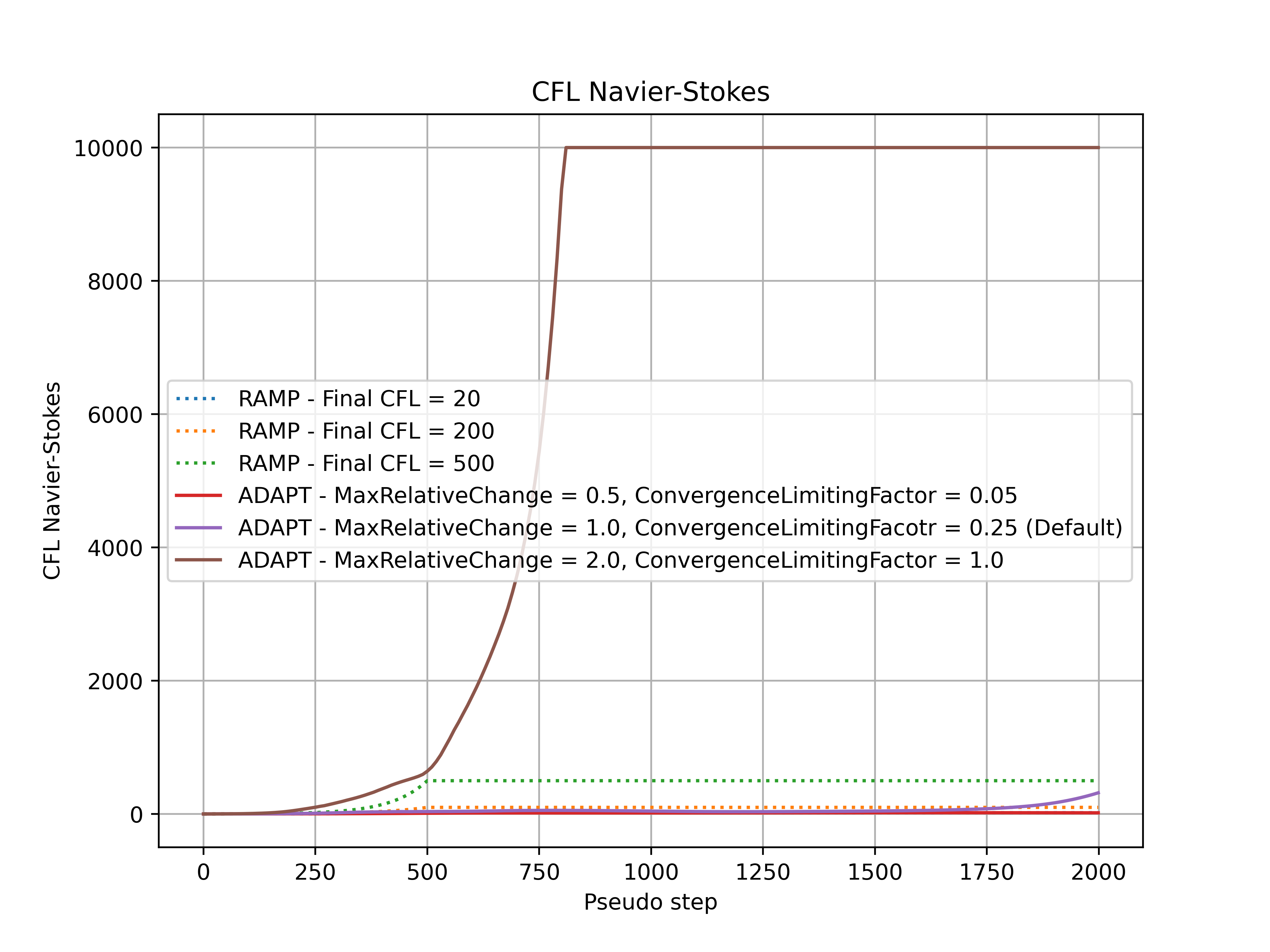 AdaptiveCFLwill lead to deeper residual convergence when the user enters too aggressive CFL settings inRampCFL, but the simulation does not diverge.