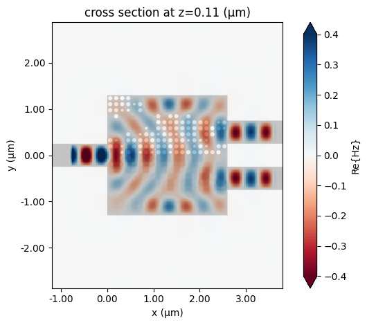 field_monitor_name="field", field_name="Hz", val="real", vmin=-0.4, vmax=0.4