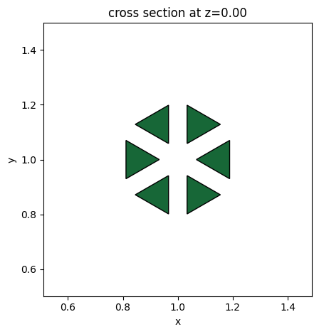 top_half_geometry.plot(z=0, ax=ax, facecolor="green")